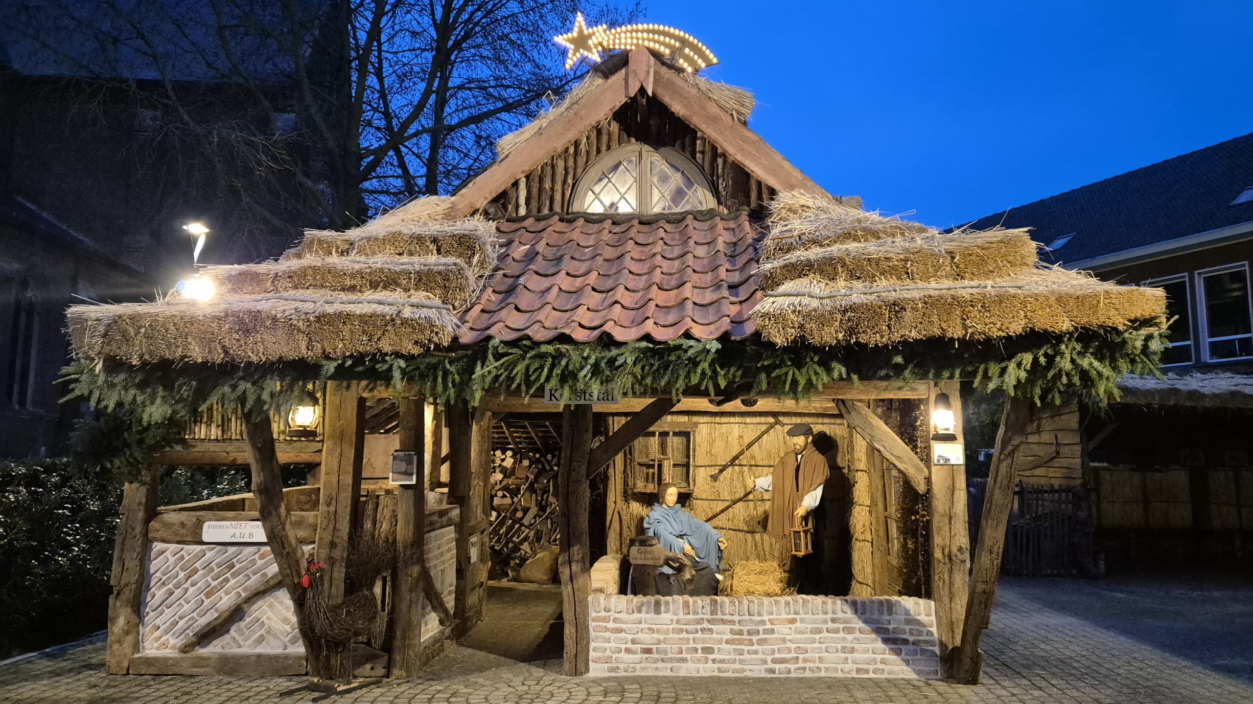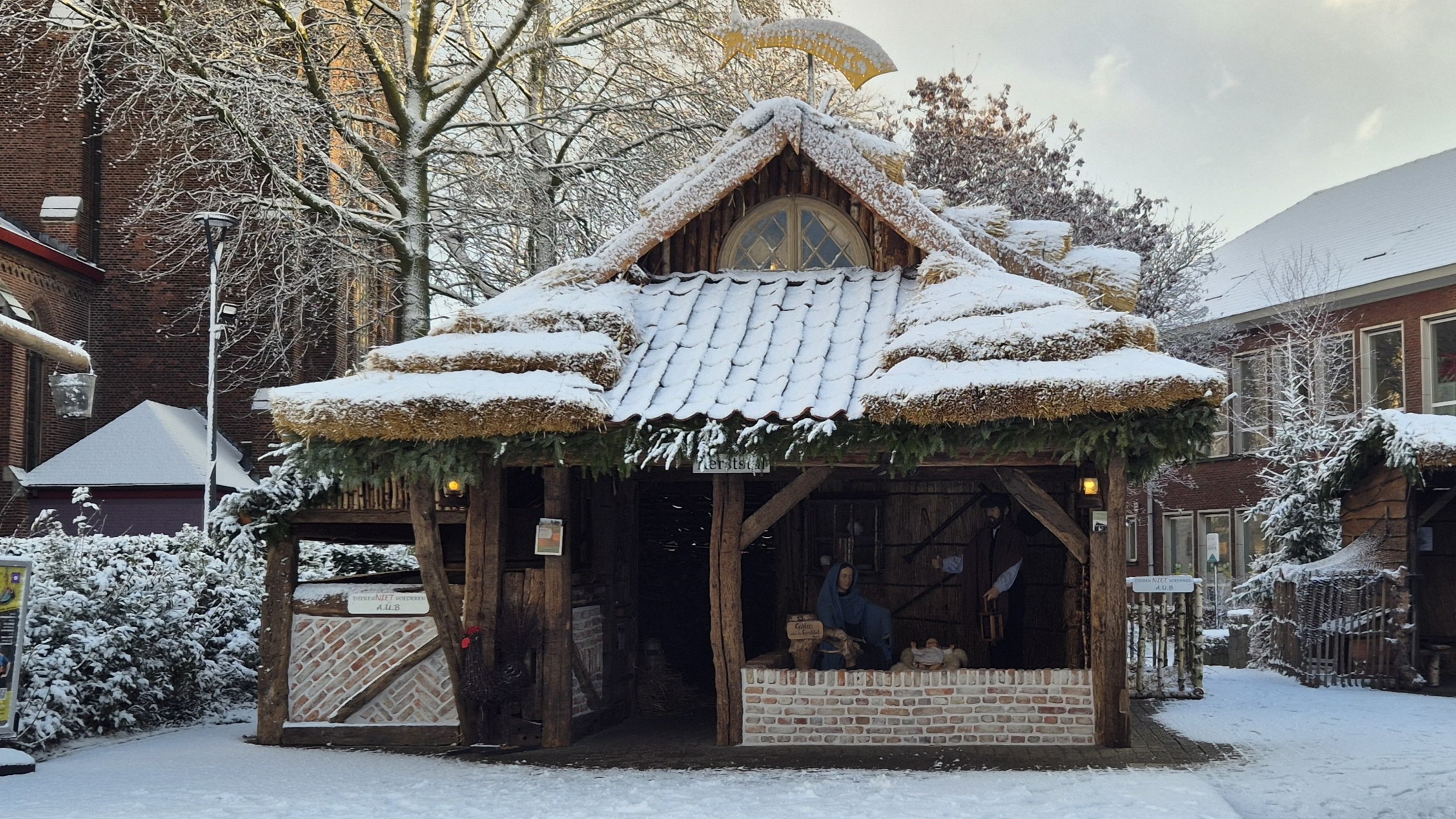 Er zijn geen vaste panelen. De kerststal wordt immers elk jaar in een andere vorm opgebouwd.