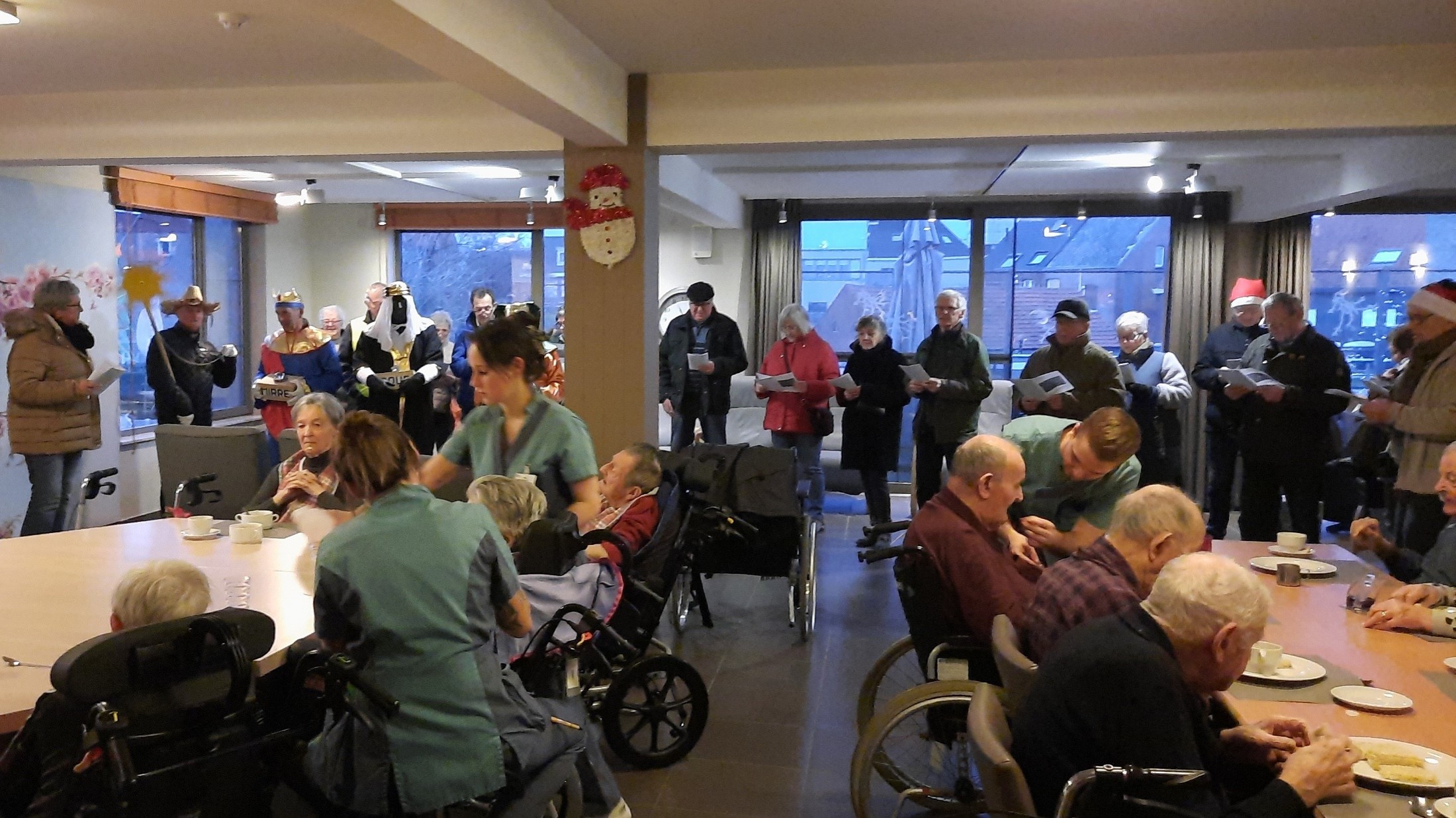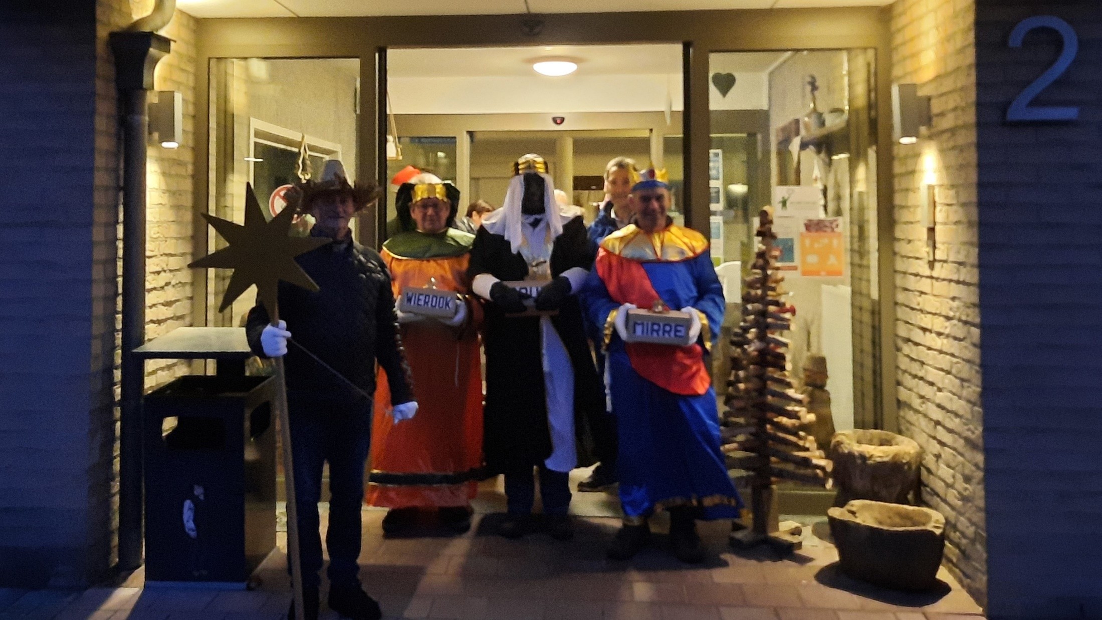 Voor ze naar de Kerststal komen brengen ze eerst een bezoek aan de bewoners van rusthuis “Het Binnenhof”